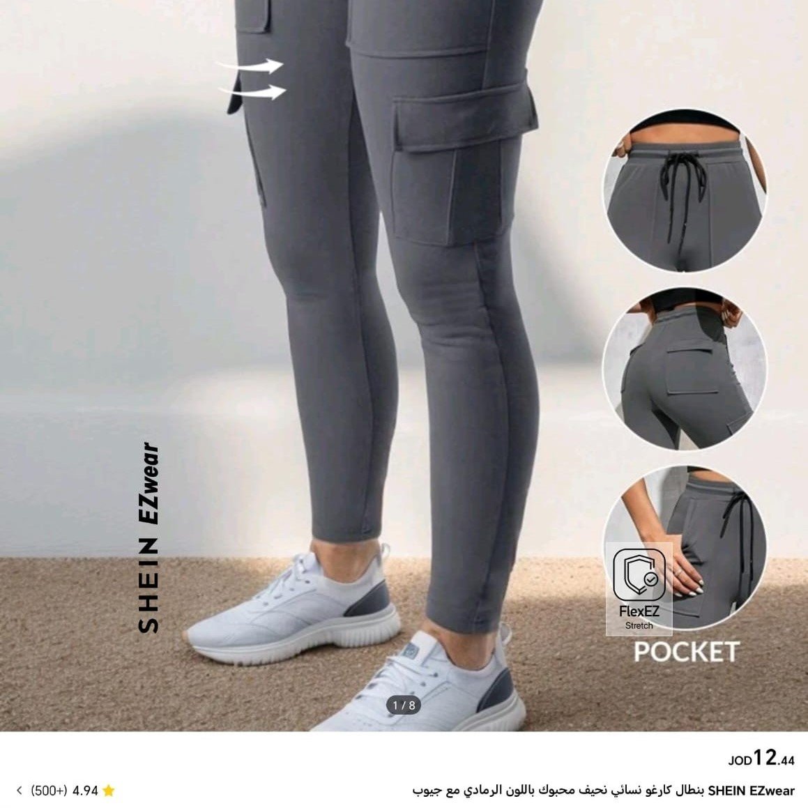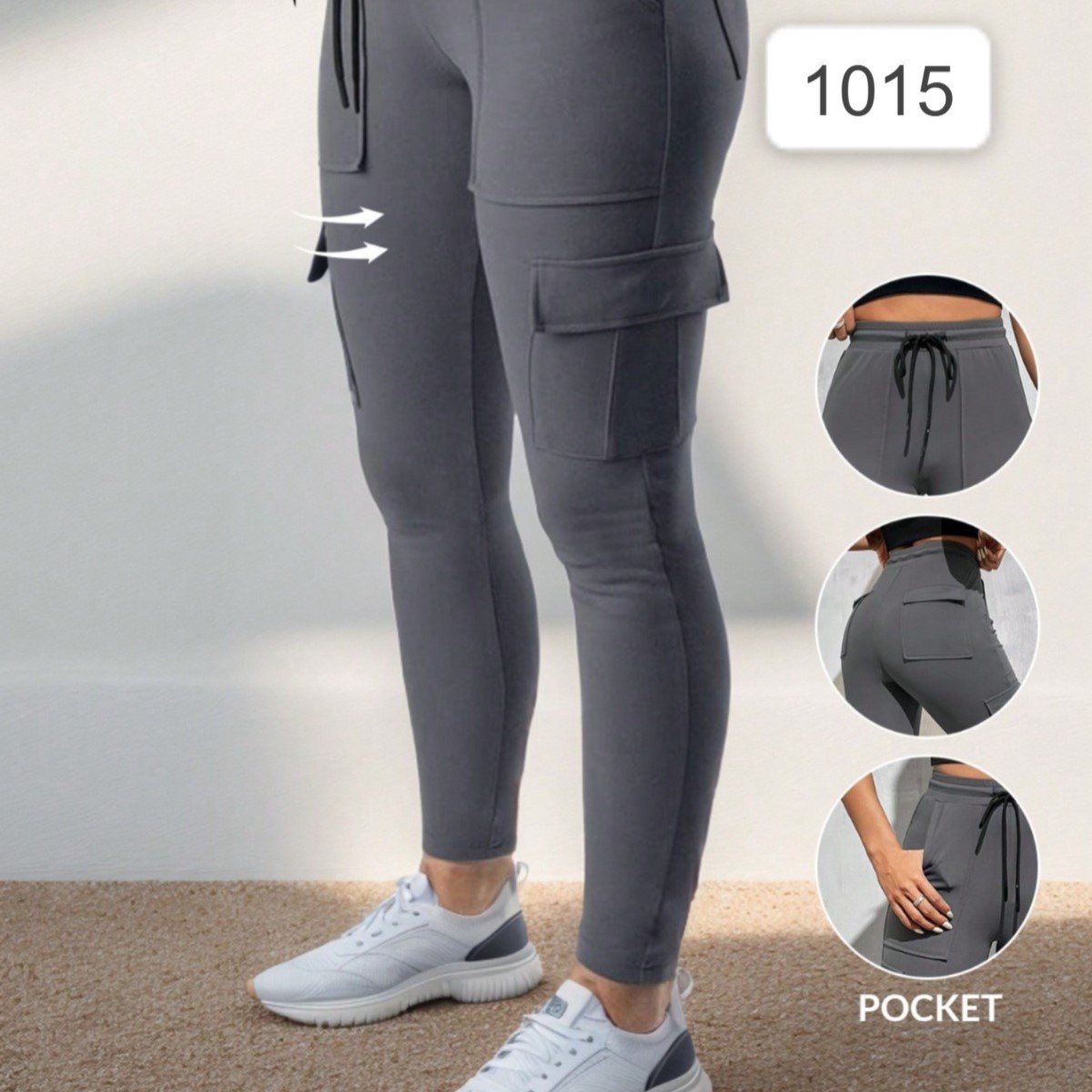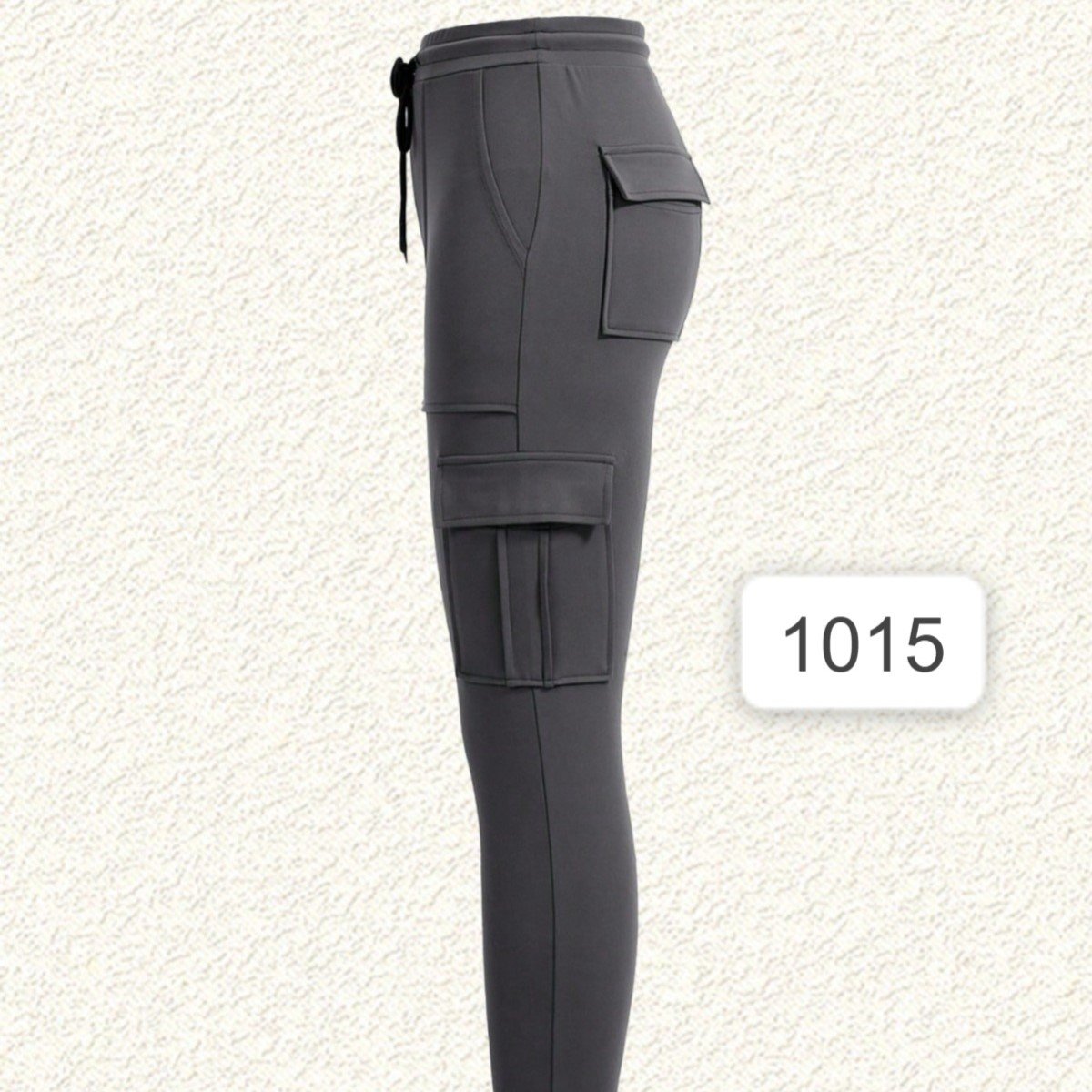 بنطال كارغو نسائي نحيف محبوك باللون الرمادي مع جيوب لون رمادي القياس لارج
