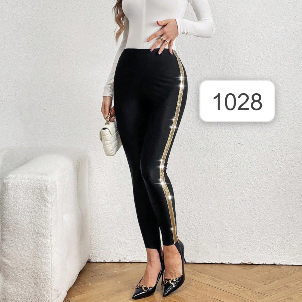 طماق نسائية بأصفاد قدم ذات خياطة جانبية لامعة ومرقعة