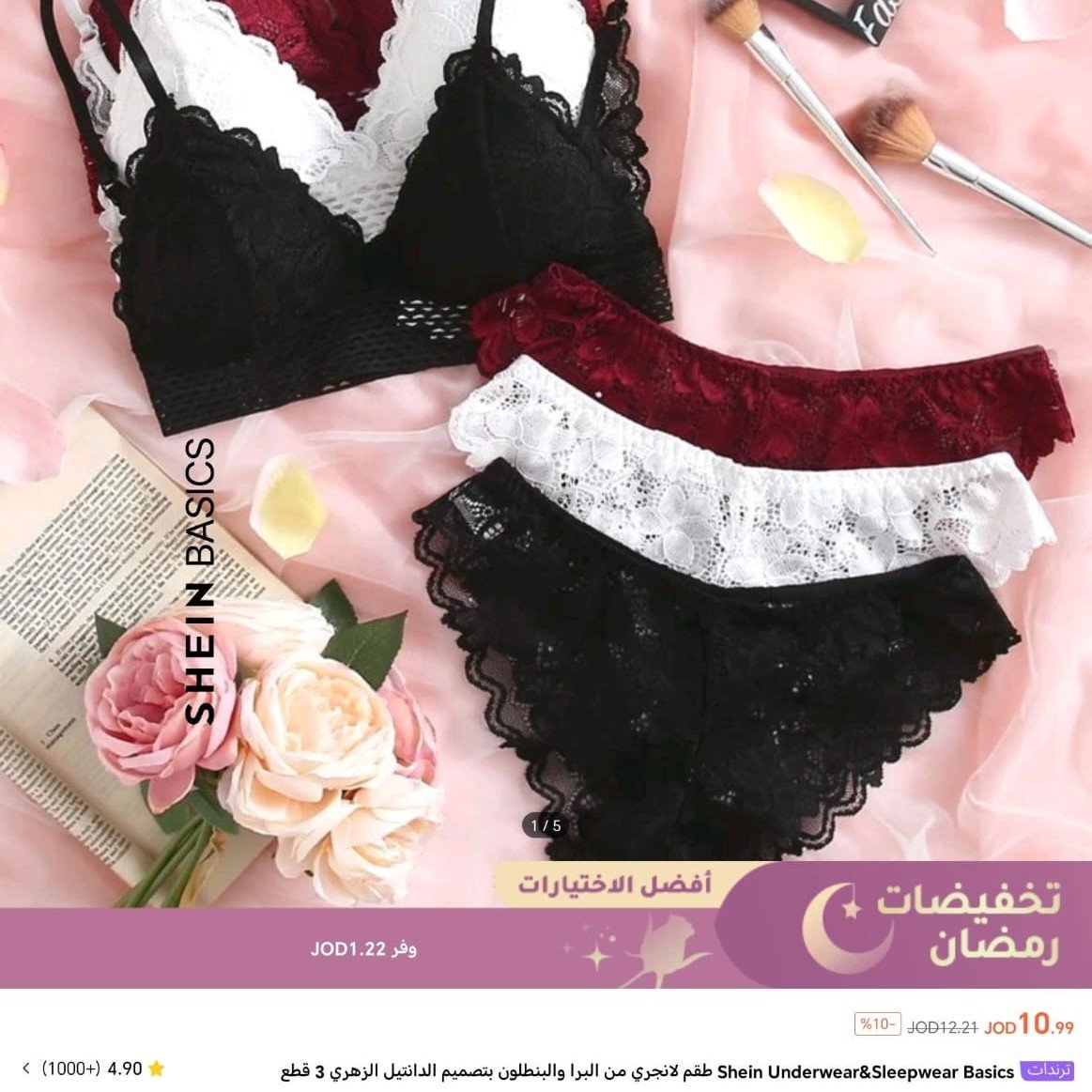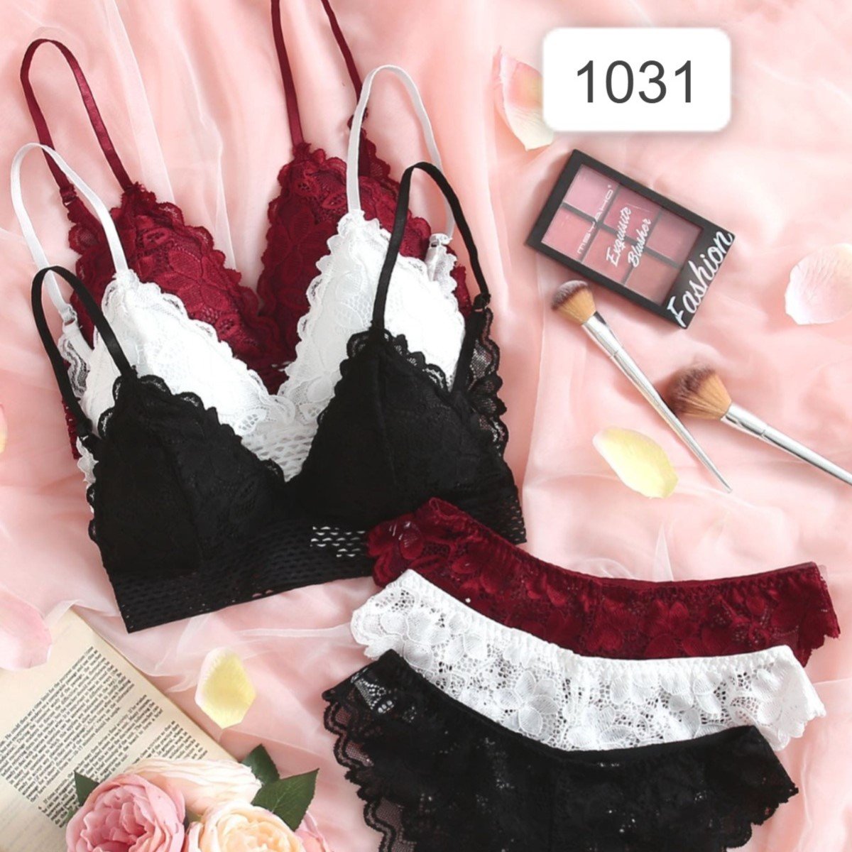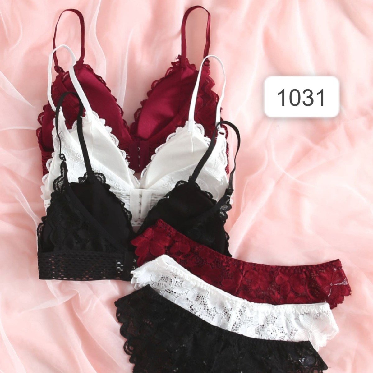 طقم لانجري من البرا والبنطلون بتصميم الدانتيل الزهري 3 اطقم