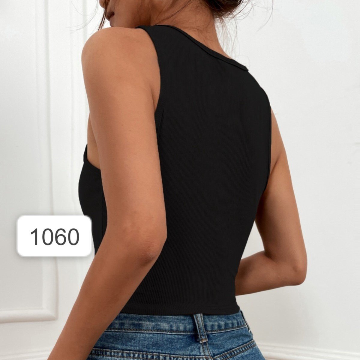بلايز بحمالات محبوك الصاف كاجوال لون اسود القياس ميديوم