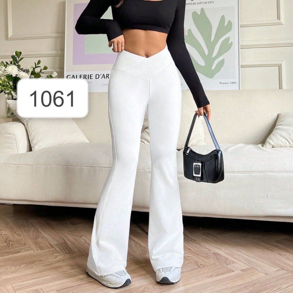 بنطلون واسع بخصر في شكل حرف V متداخل لون أبيض القياس ميديوم