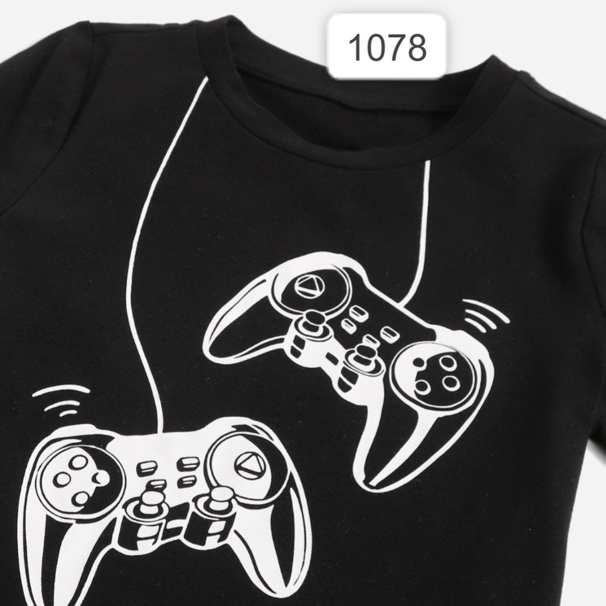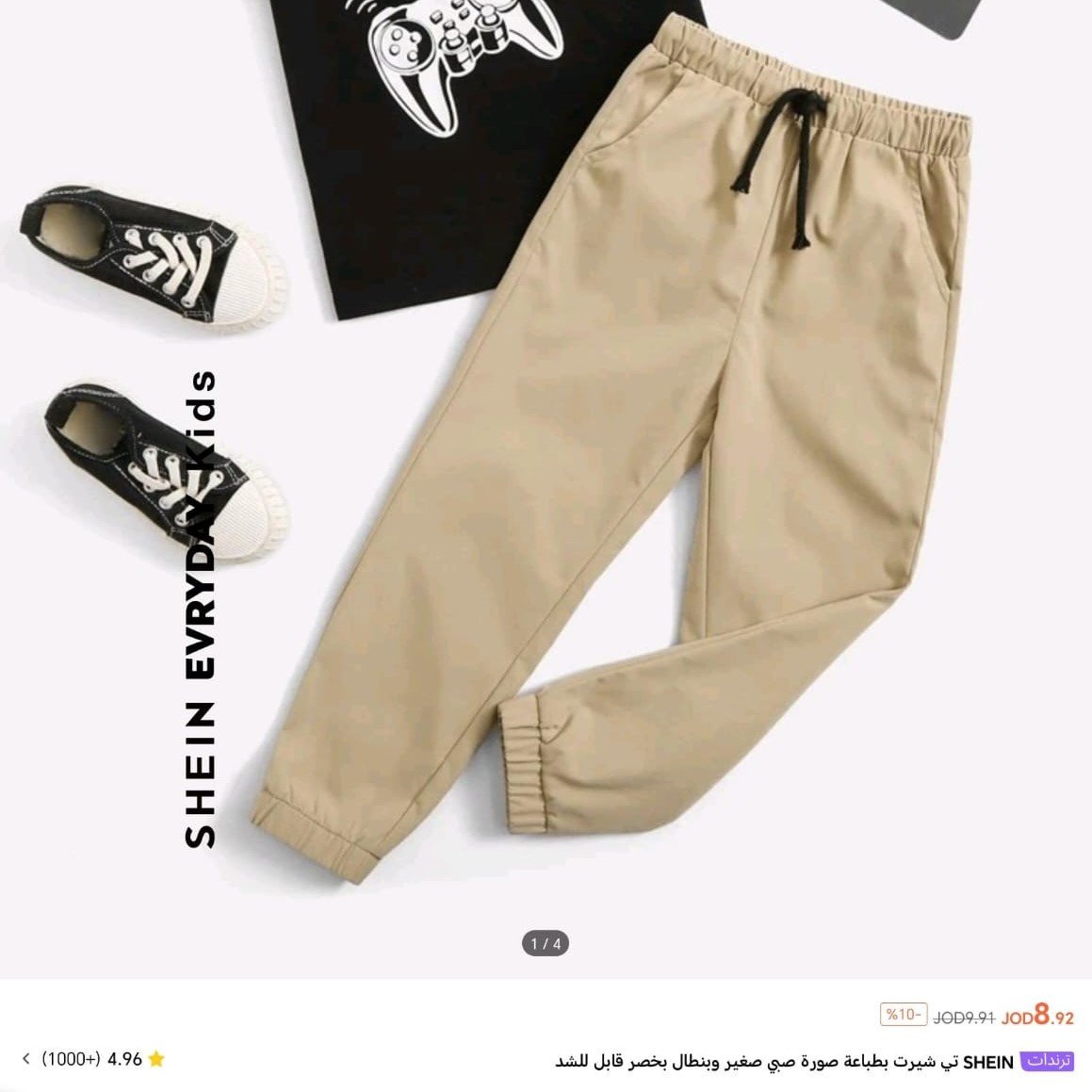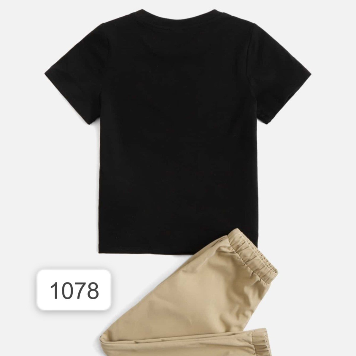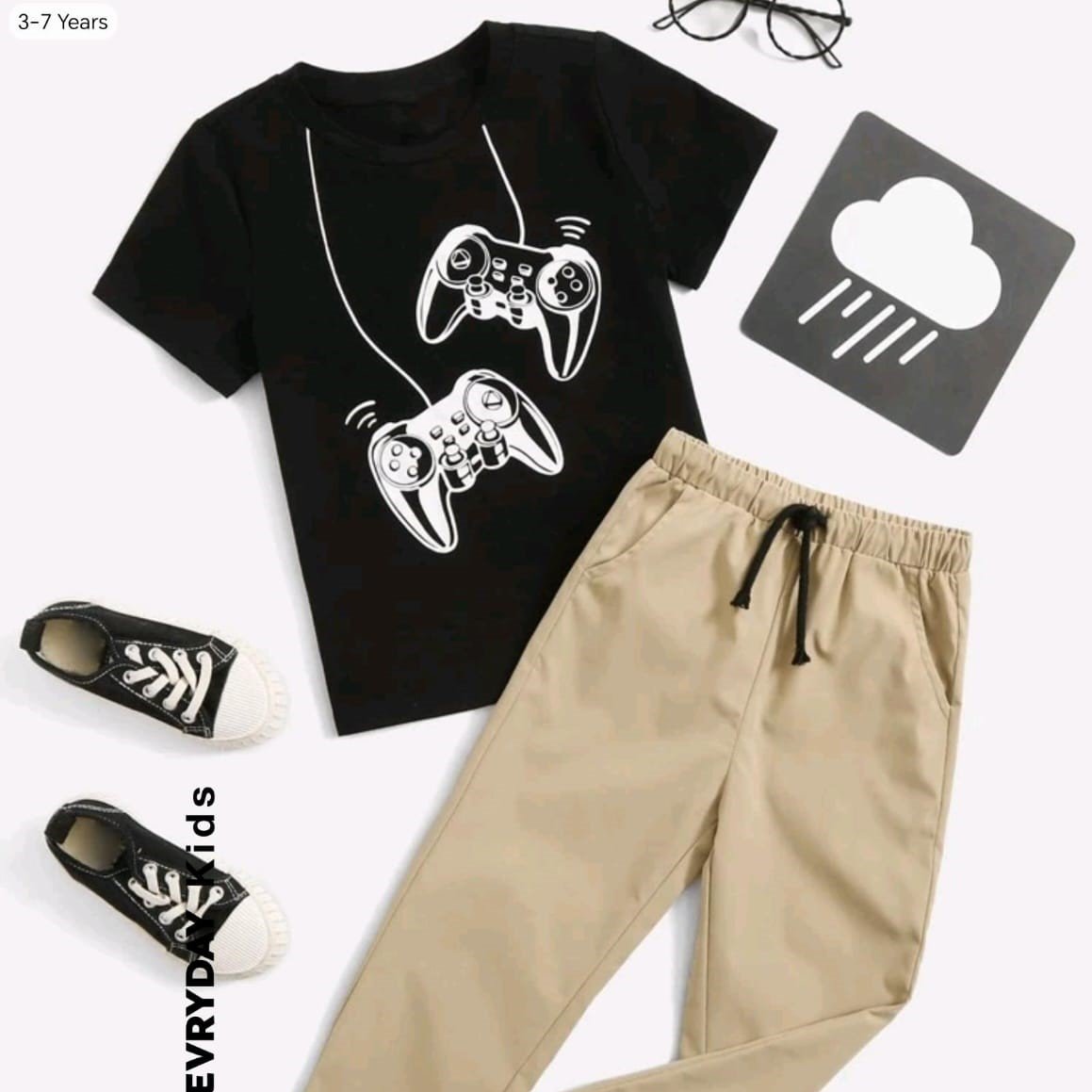 تي شيرت بطباعة صورة صبي صغير وبنطال بخصر قابل للشد