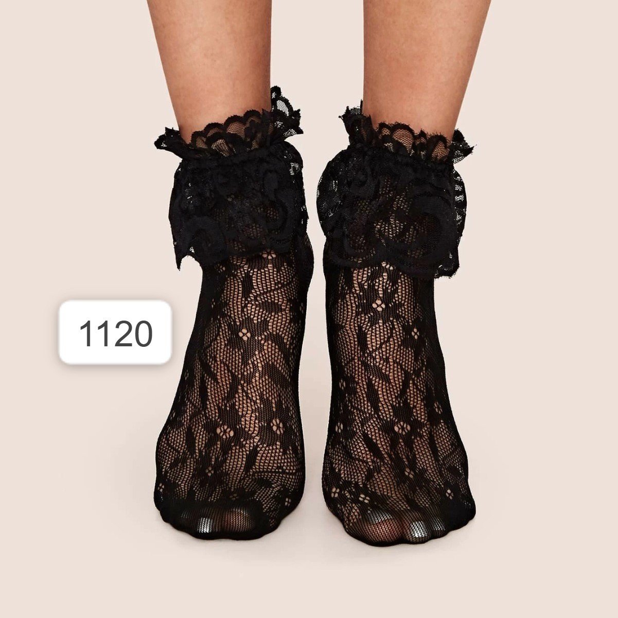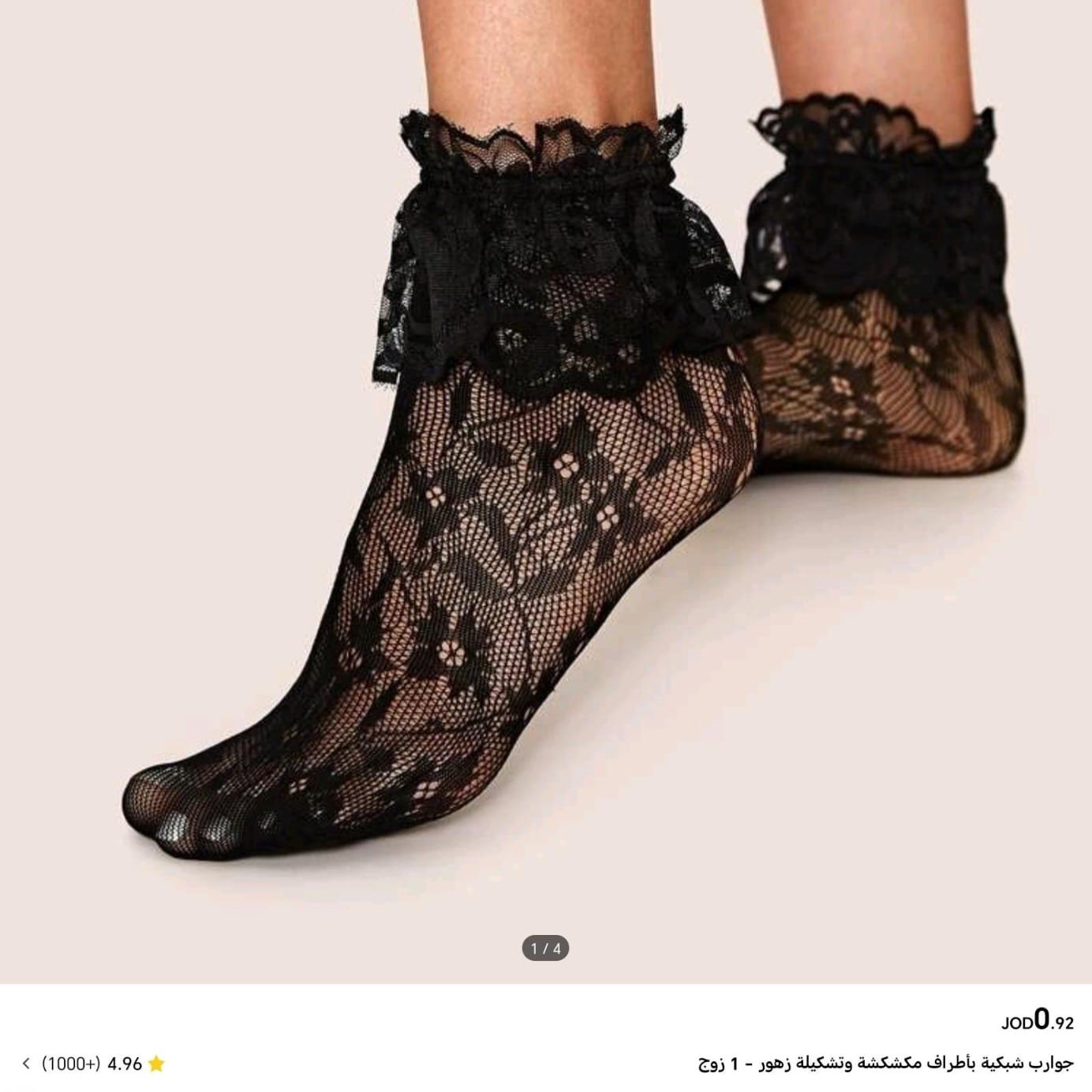 جوارب شبكية بأطراف مكشكشة وتشكيلة زهور