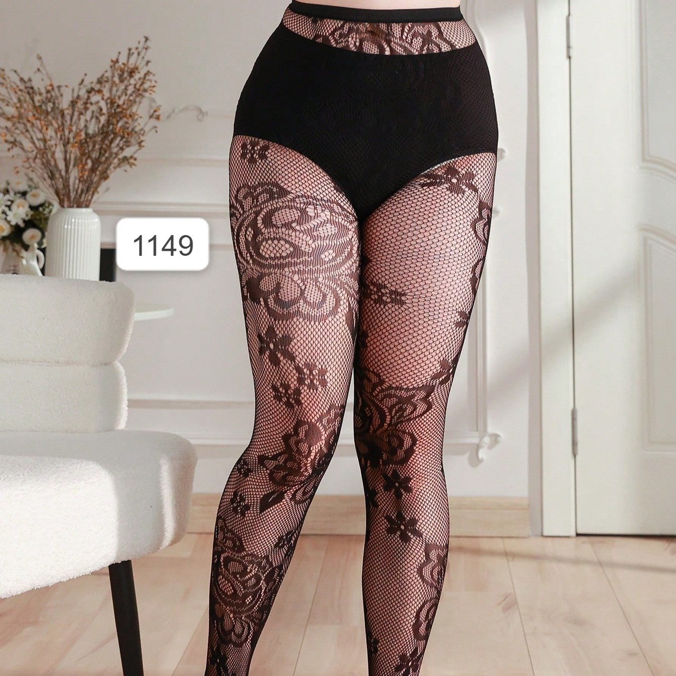 جوارب رباعية شبكية زهرية للسيدات بمقاس كبير بتصميم غير متماثل، أساسي ومتعدد الاستخدامات لفصلي الربيع والصيف