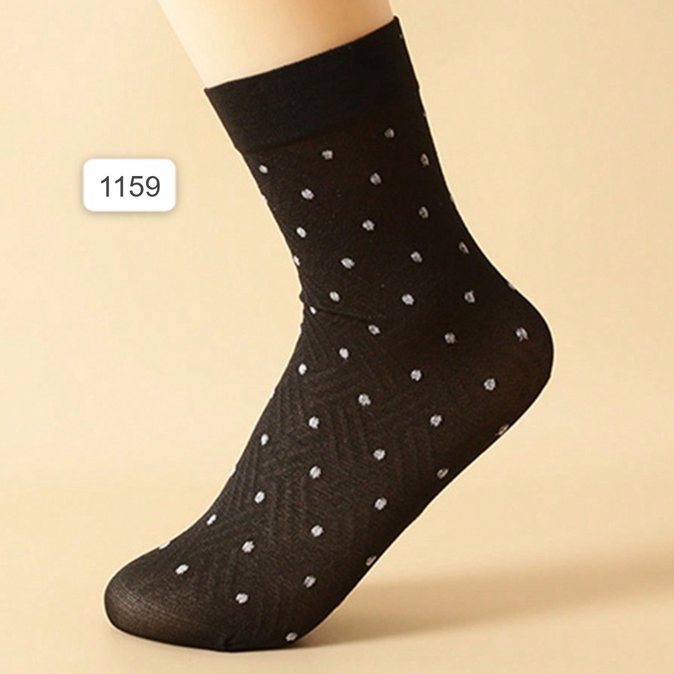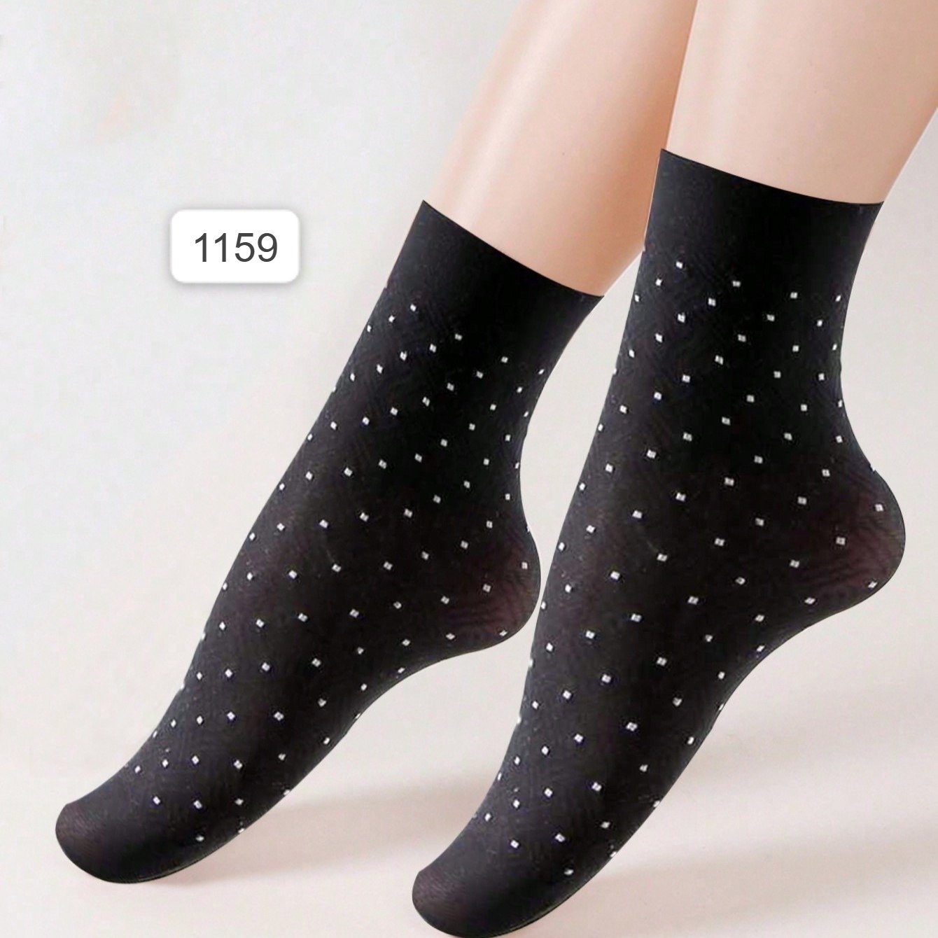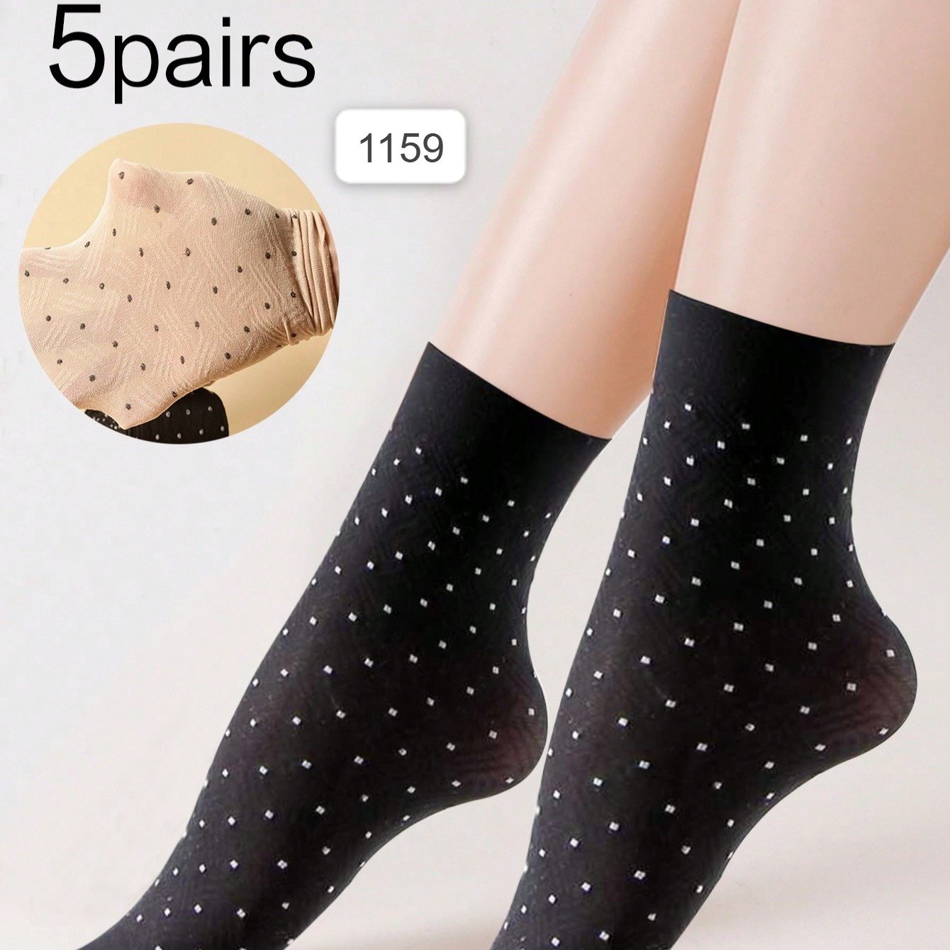 جوارب قصيرة سوداء نسائية منقطة بنقاط وتصميم جاكارد بمجموعة 5 أزواج، مرنة للغاية، متنفسة، أساسية ومتعددة الاستخدامات