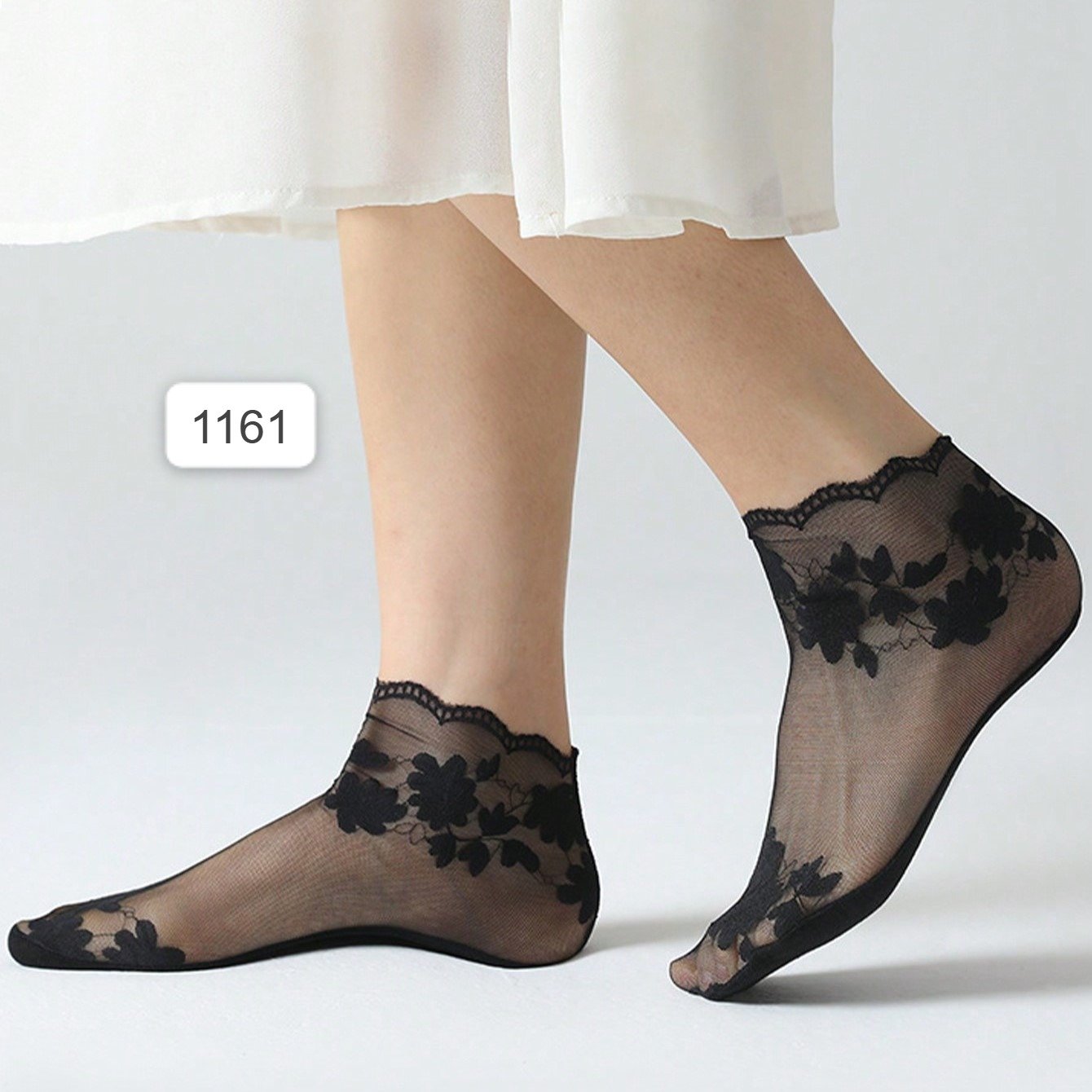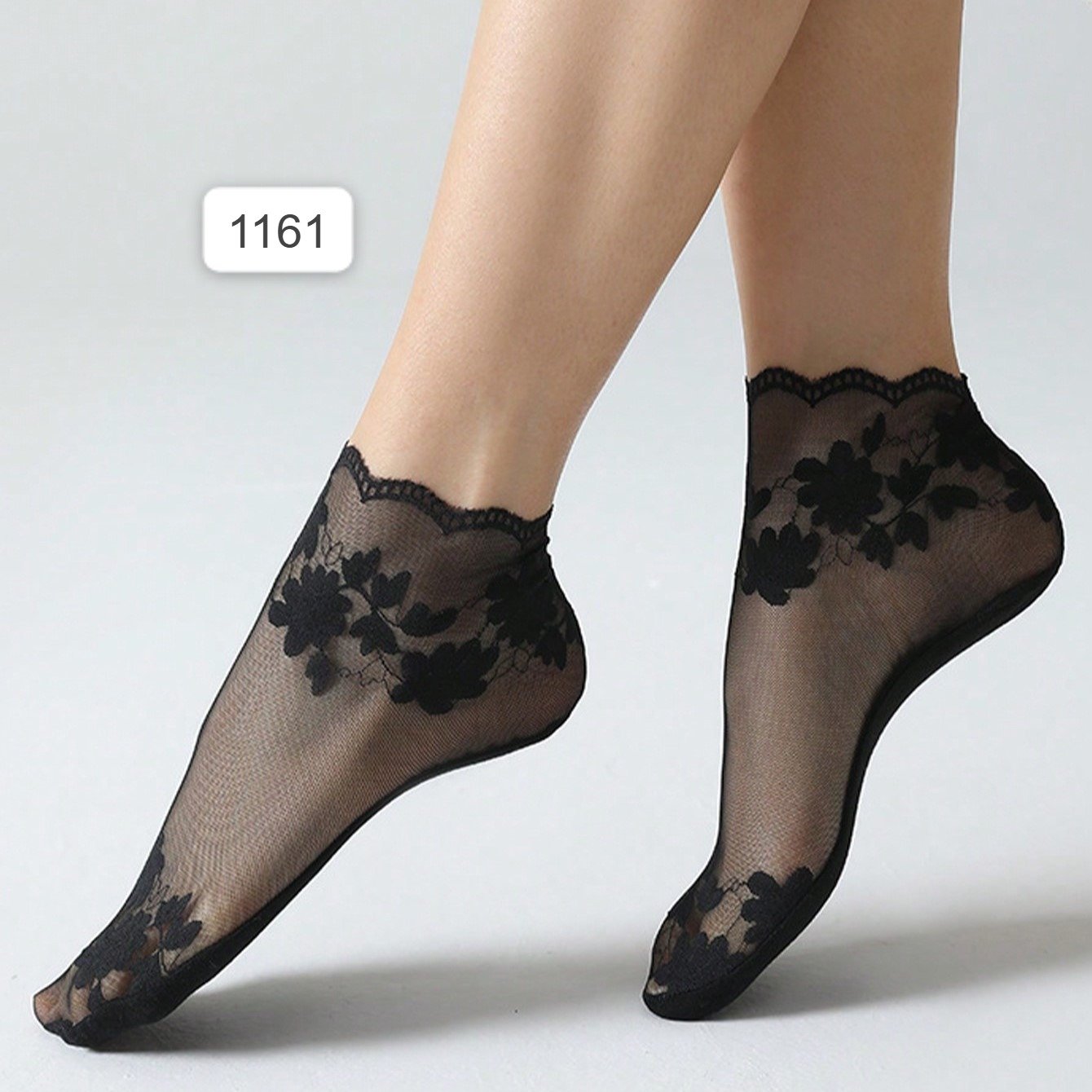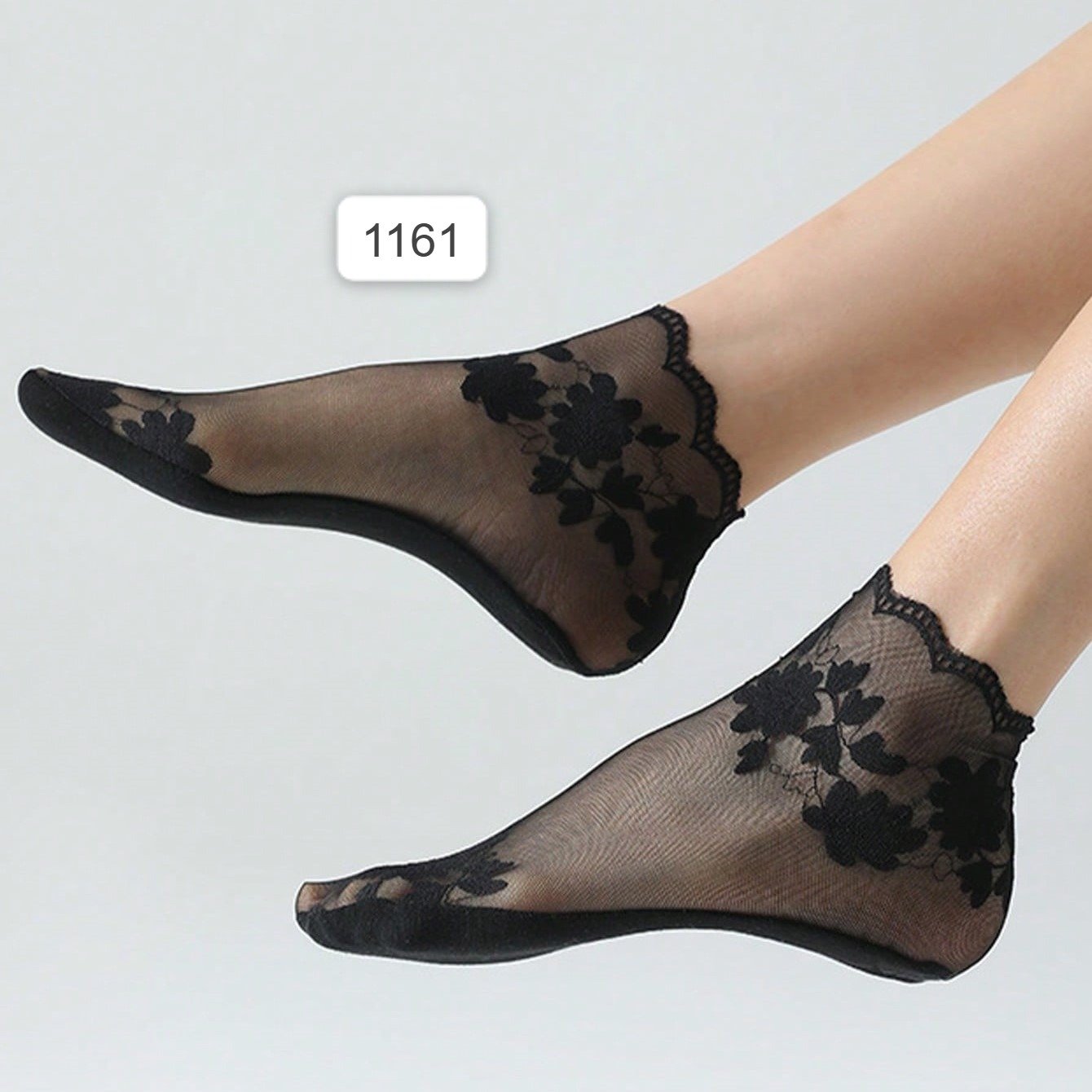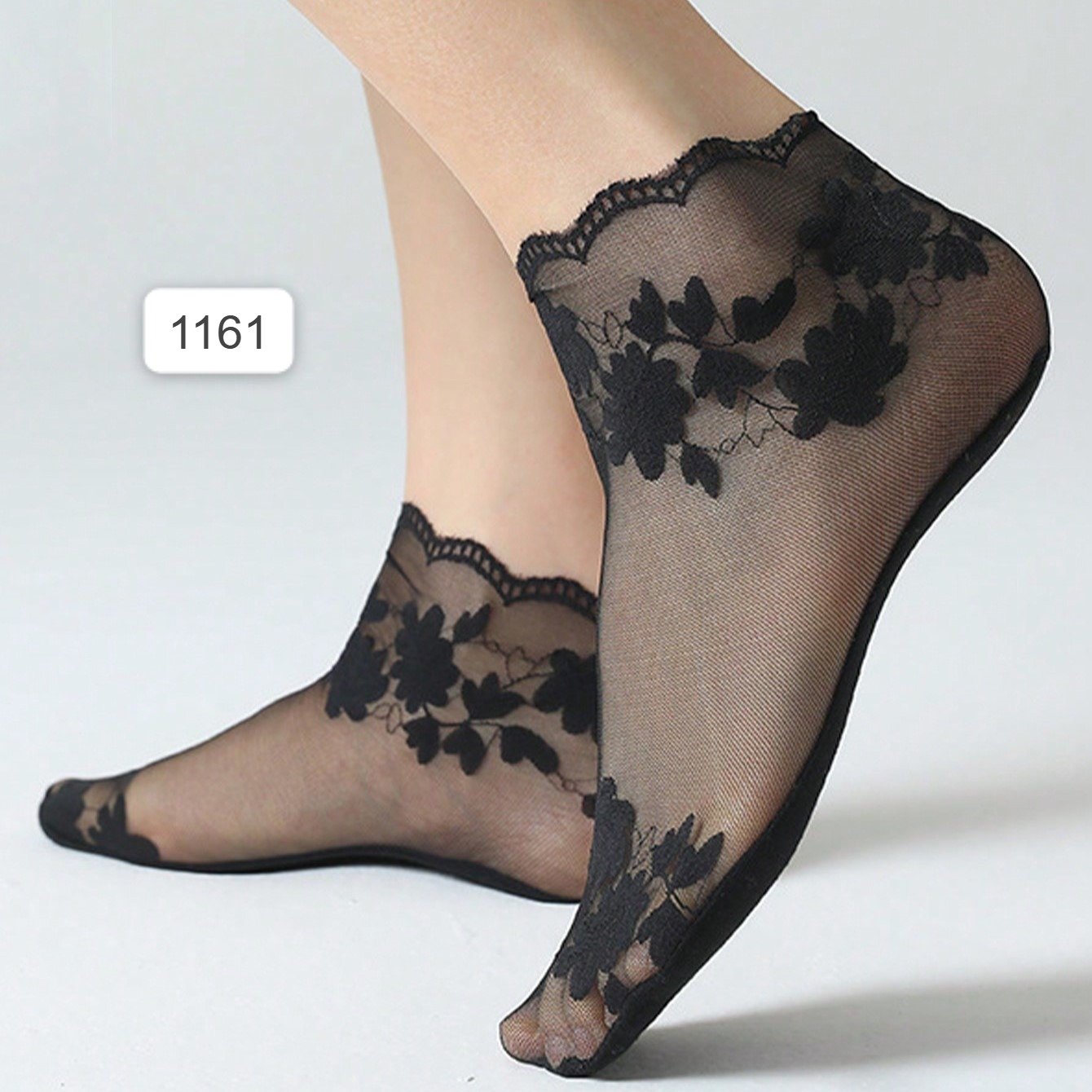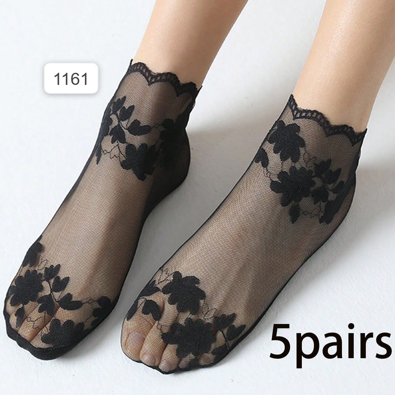 خمس أزواج من جوارب الدانتيل الرفيعة للنساء طول متوسط \ شفافية صافية جوارب شبكية