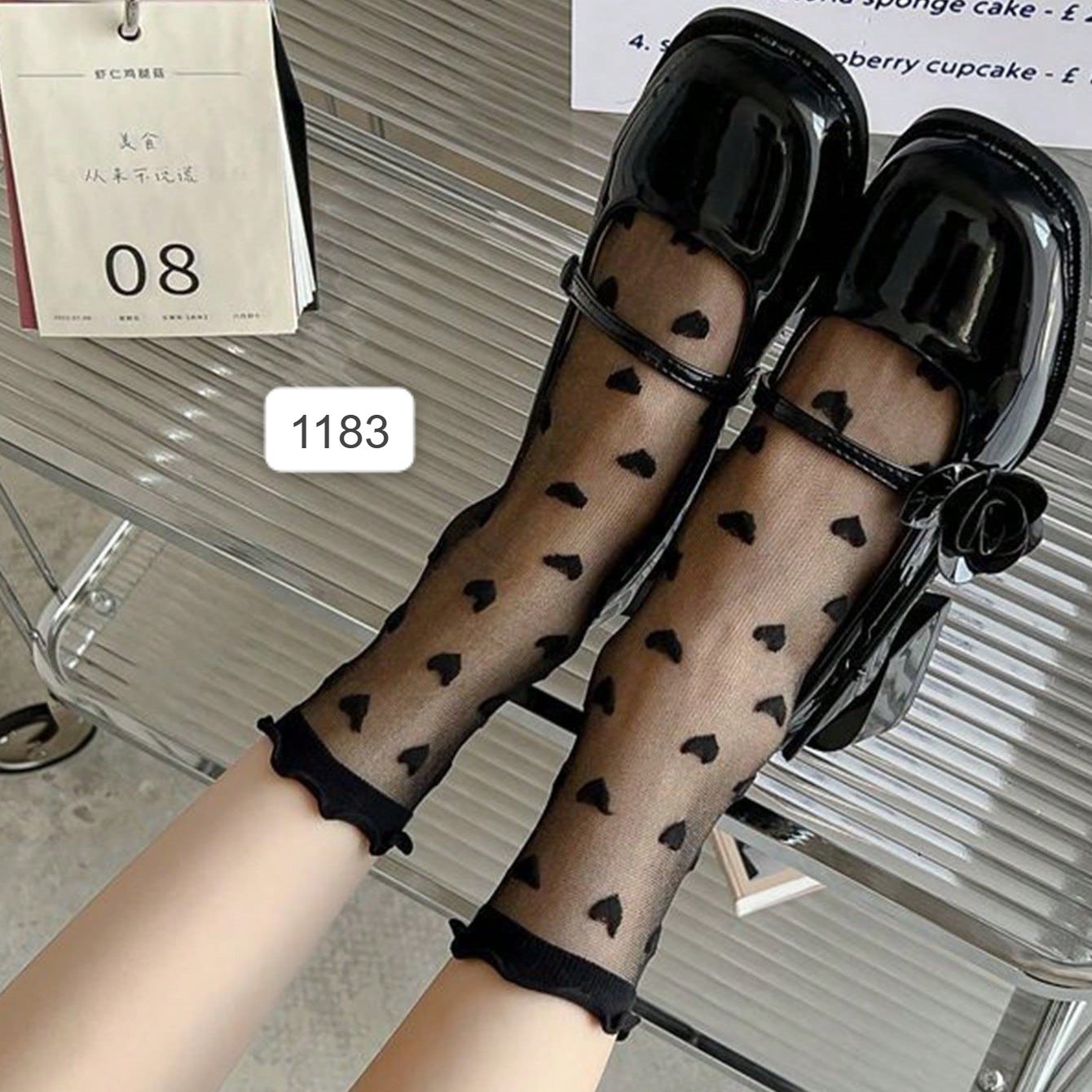 جوارب قصيرة بتفصيل الدانتيل ذو القلب للسيدات مع الحواف الشفافة والمتدرجة