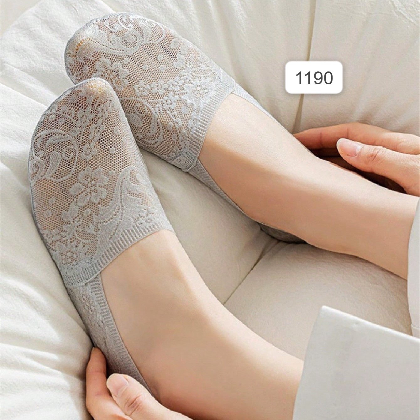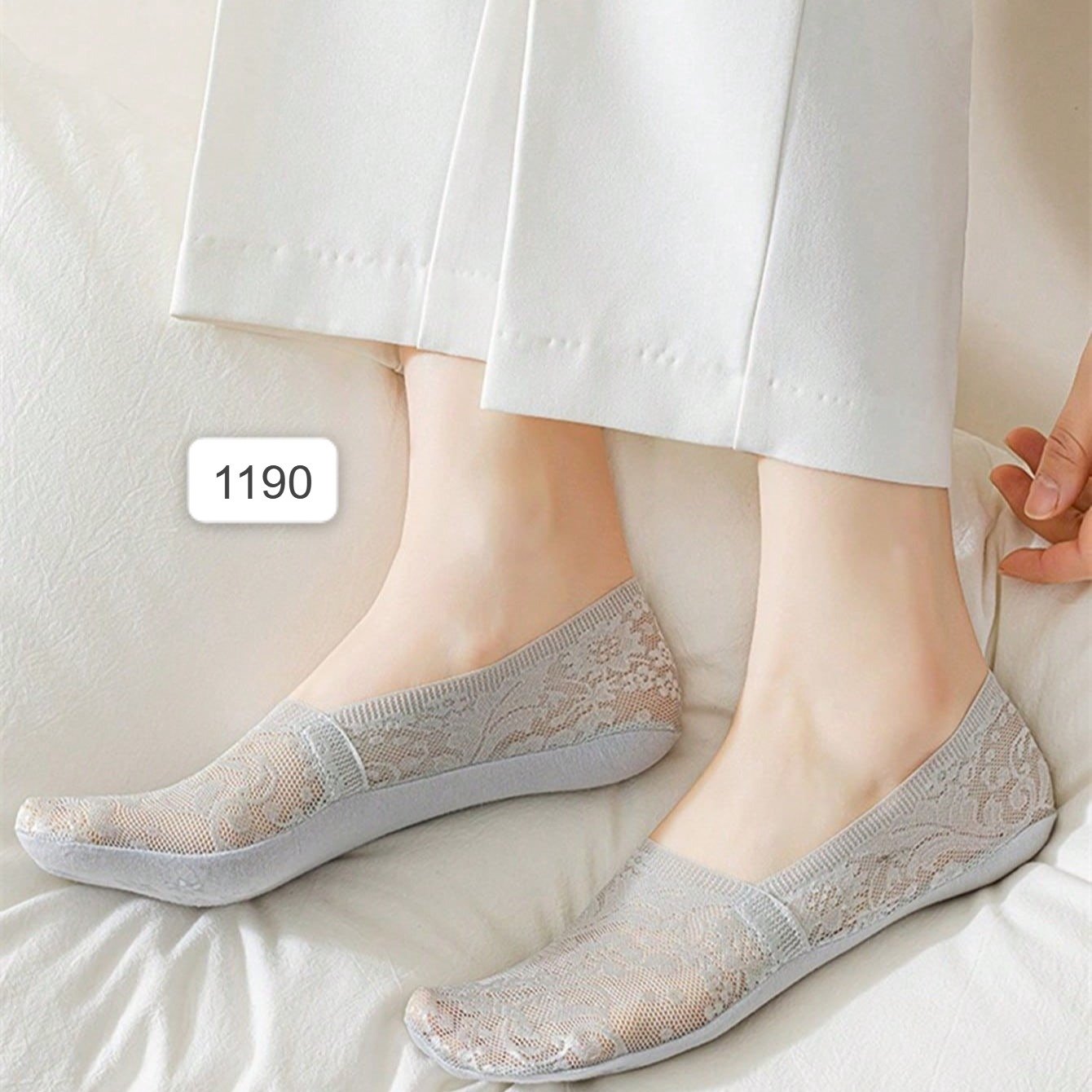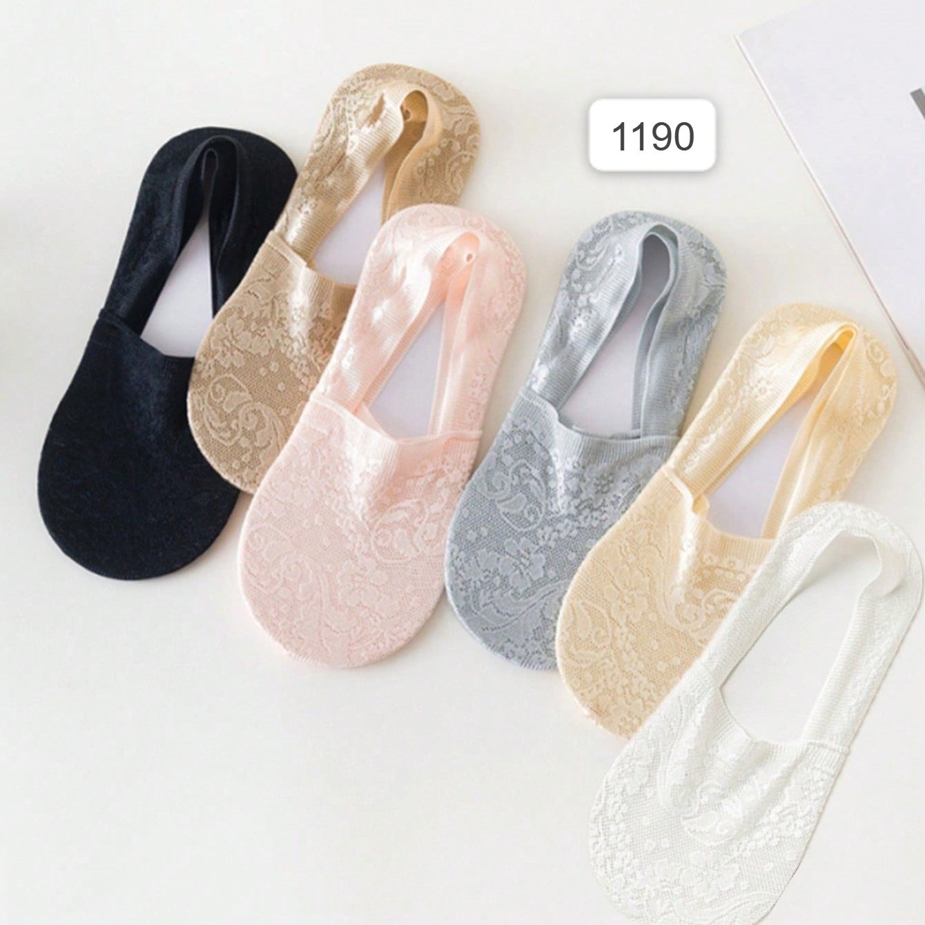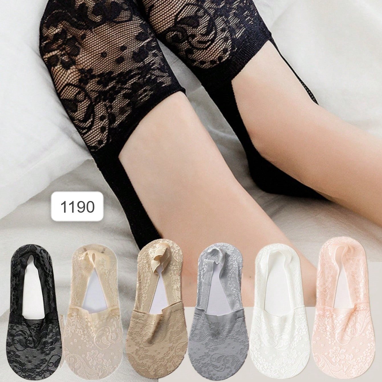 6 أزواج من جوارب الكاحل غير الظاهرة غير الانزلاقية للنساء، جوارب الدانتيل العادية