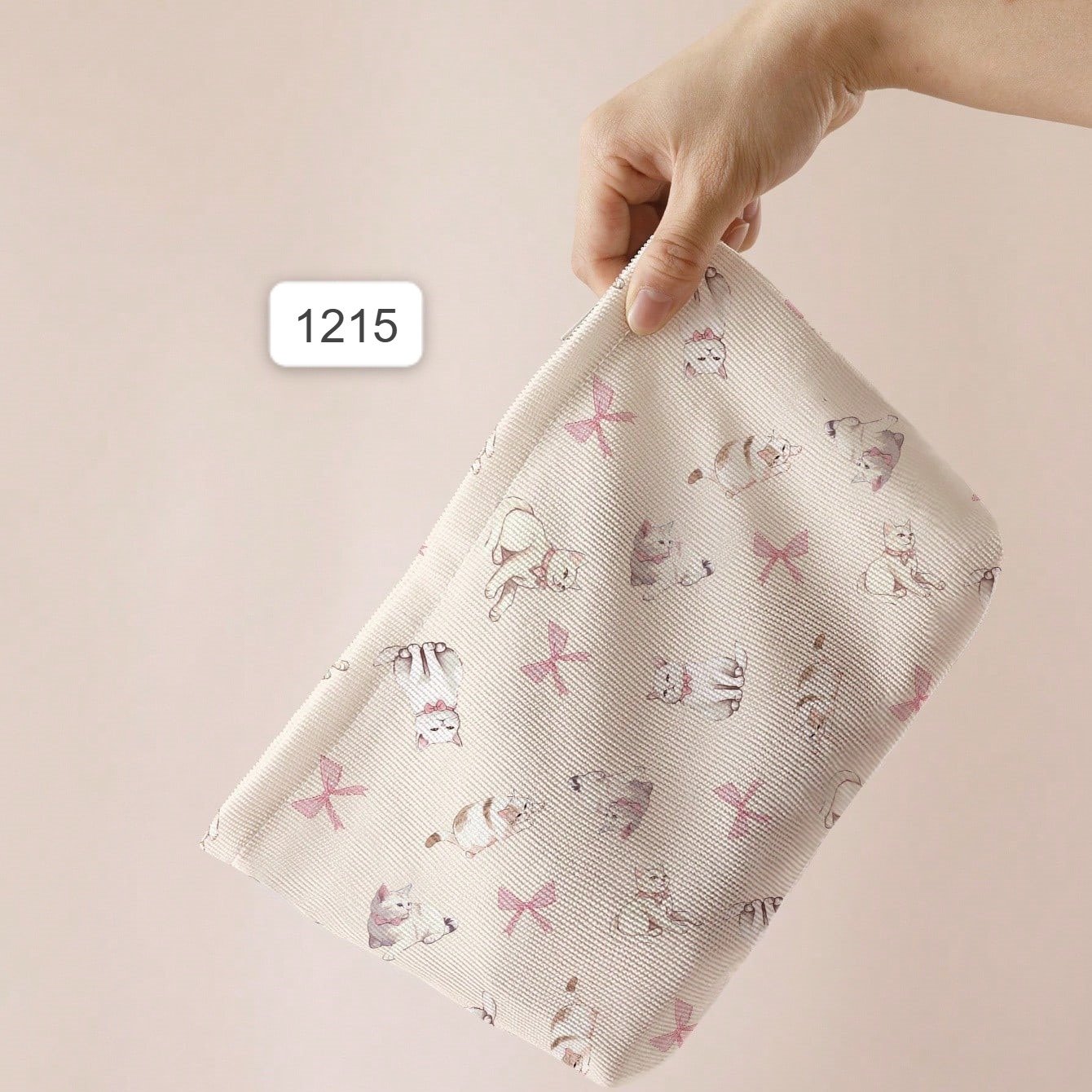 حقيبة مستحضرات تجميل مخملية مطبوعة على الوجهين بنمط قطة مرسومة يدويًا