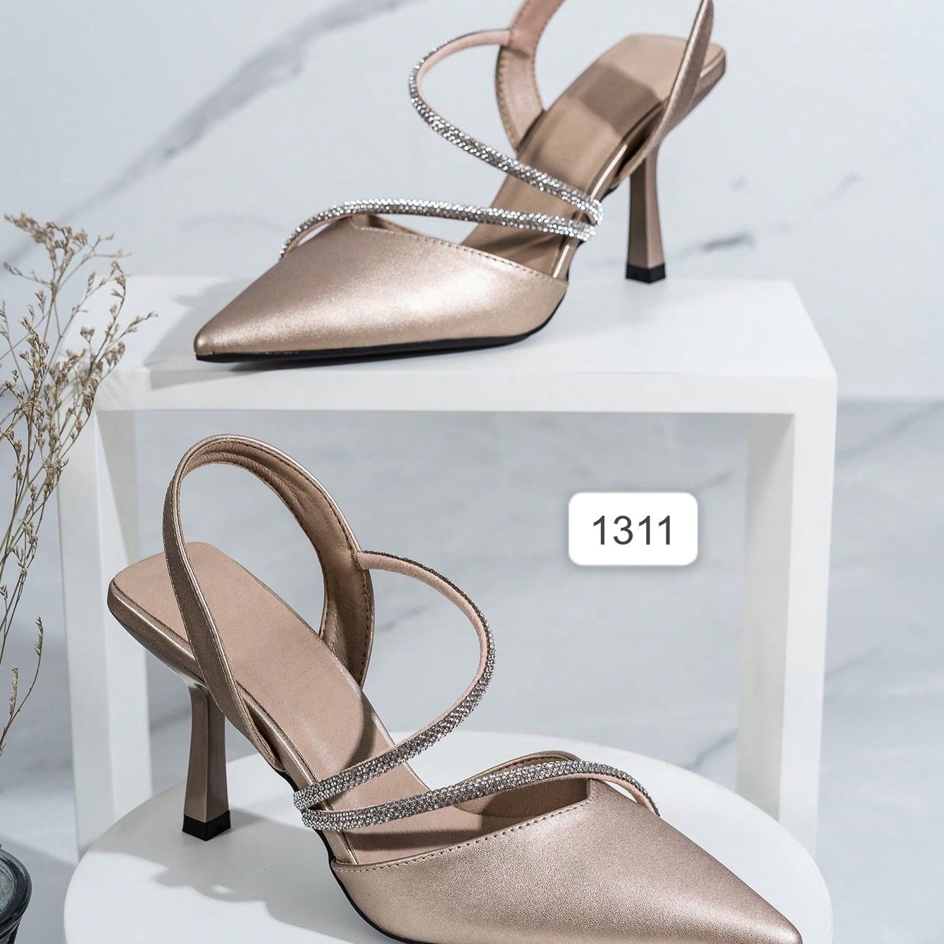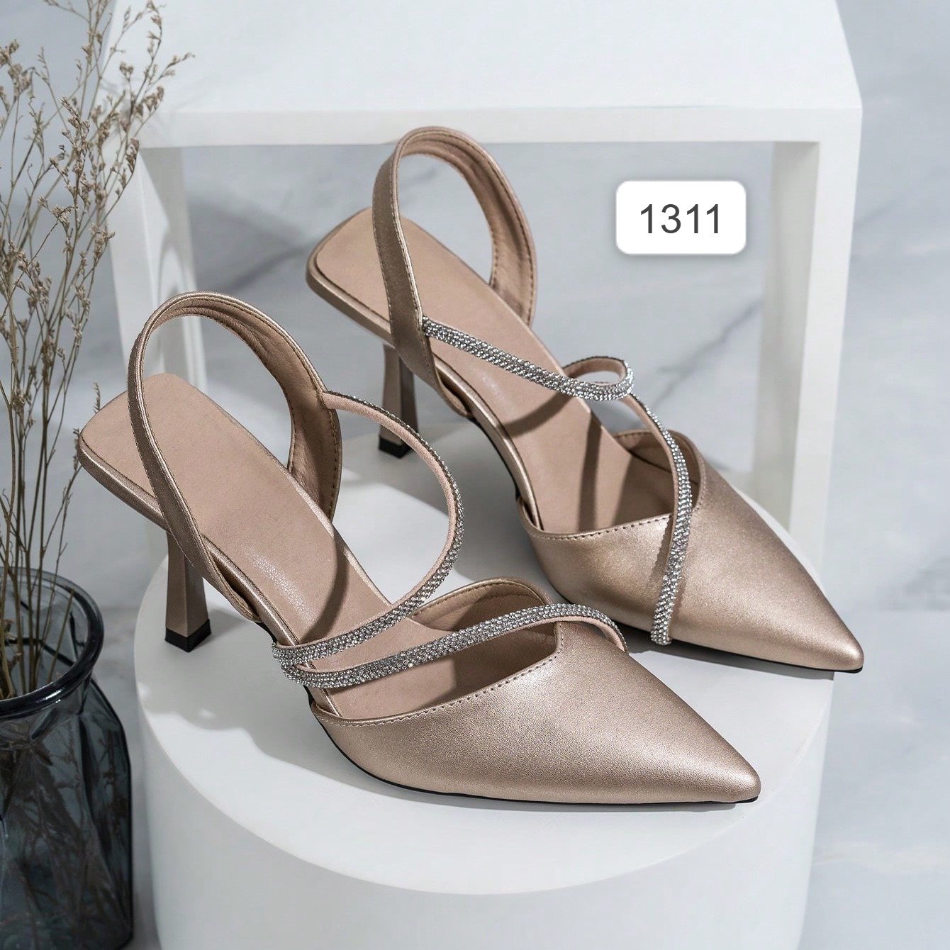 حذاء كعب عالي مع حجر الراين زخارف للنساء