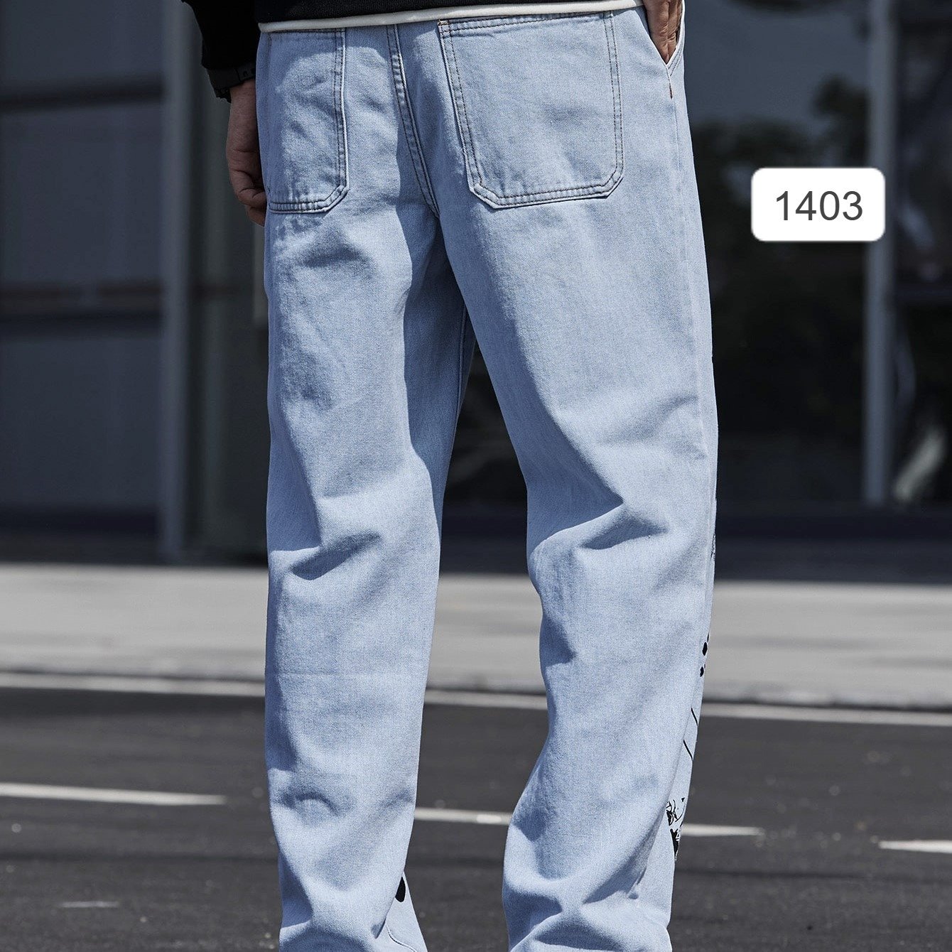 بنطلون جينز قطن بجرافيك شعار وشكل فضفاض لون ازرق القياس 5-6 سنوات