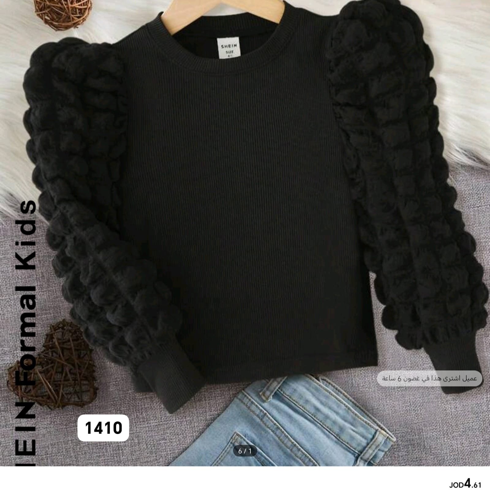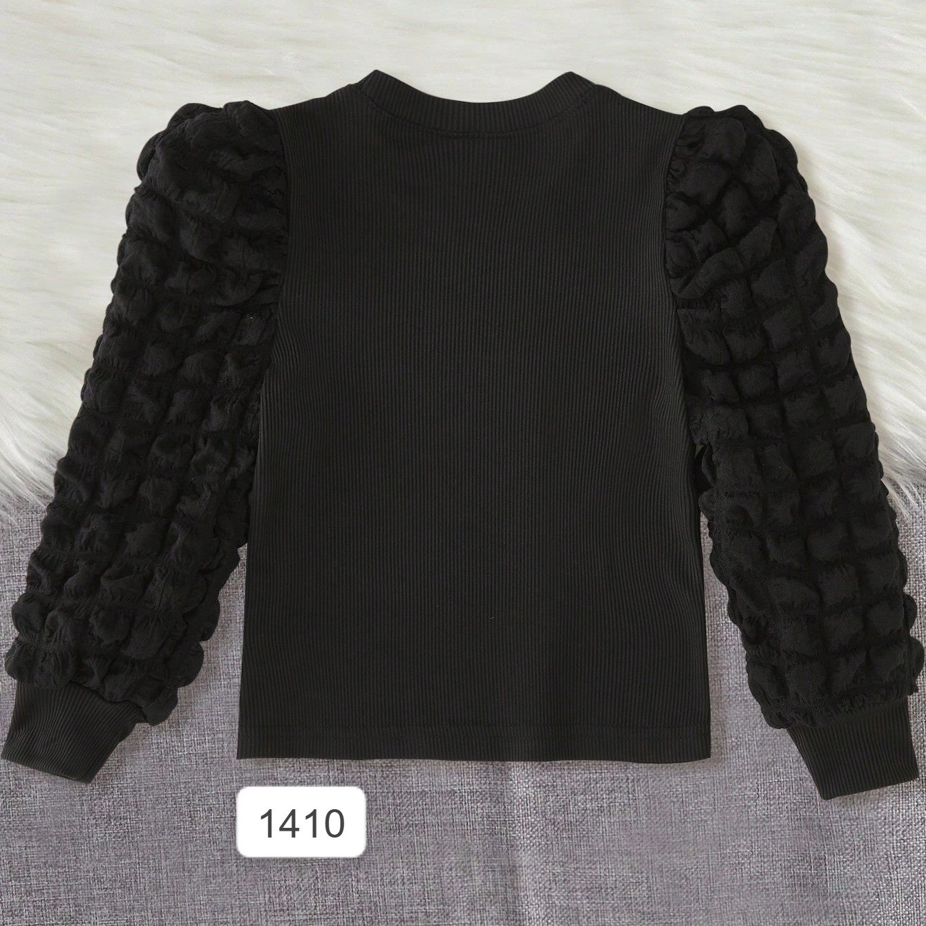 طعة تيشيرت محبوكة طويلة الأكمام واسعة للفتيات الصغيرات بأكمام منتفخة لفصلي الربيع والخريف