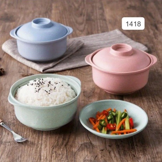 وعاء شوربة من القمح القشري بلون ازرق، مقاوم للحرارة