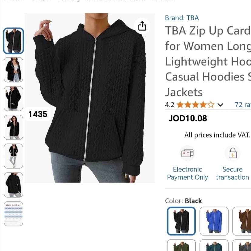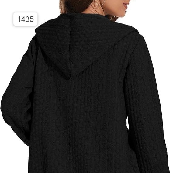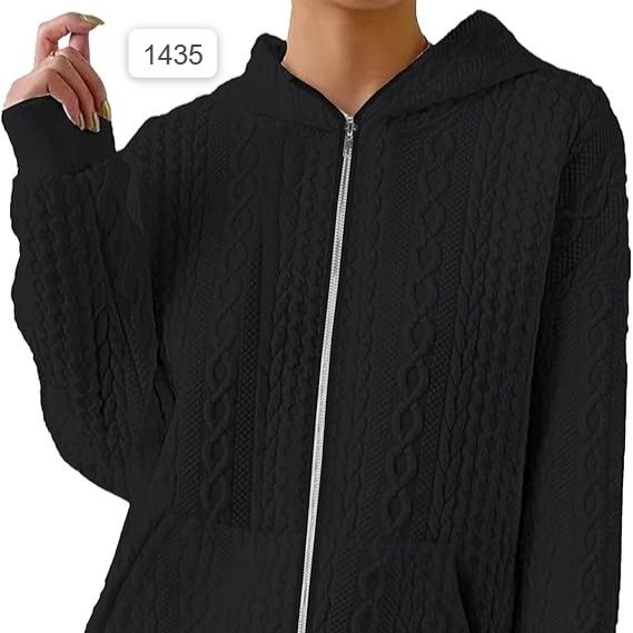 سترة كارديجان بسحاب للنساء بأكمام طويلة وخفيفة الوزن مع هودي لون الأسود القياس لارج